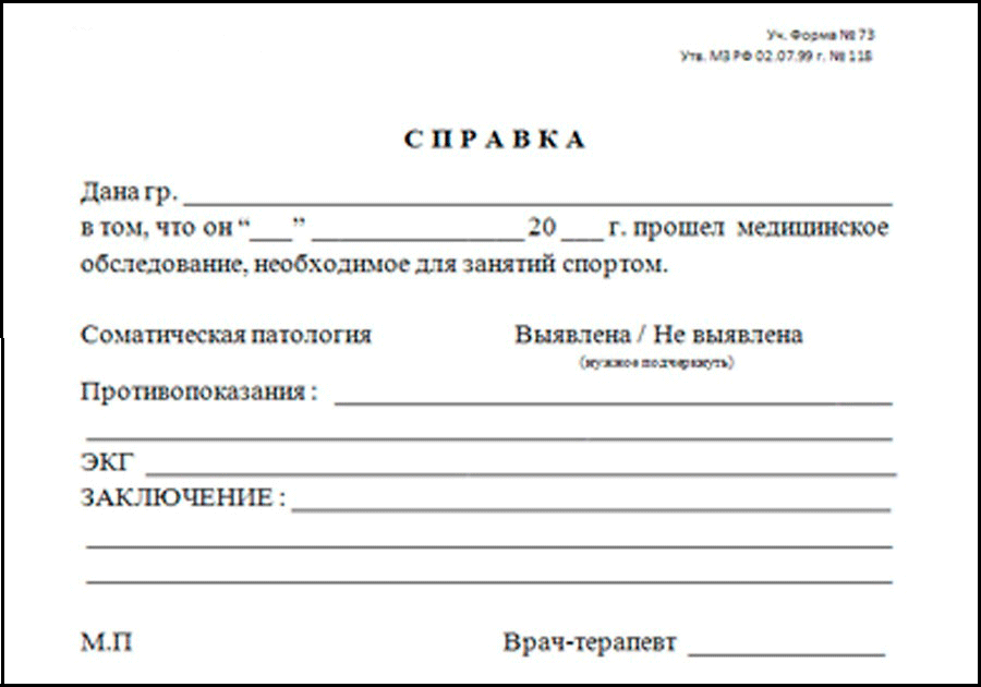 Справка в спортзал